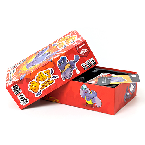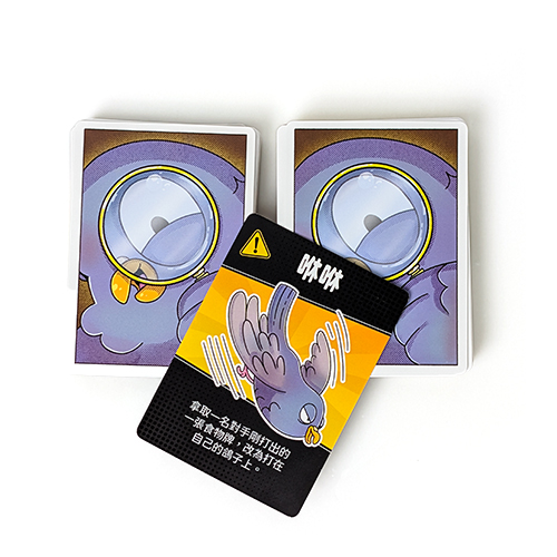 將快樂鴿子的食物全部丟棄,該玩家重新抽一張鴿子代表自己。 - 當任何一隻鴿子獲得的食物牌種類達到4種或更多,那隻鴿子就爆炸!將爆炸鴿子的食物全部丟棄,該玩家重新抽一張鴿子代表自己並額外抽2張爆炸牌,其他玩家抽1張。